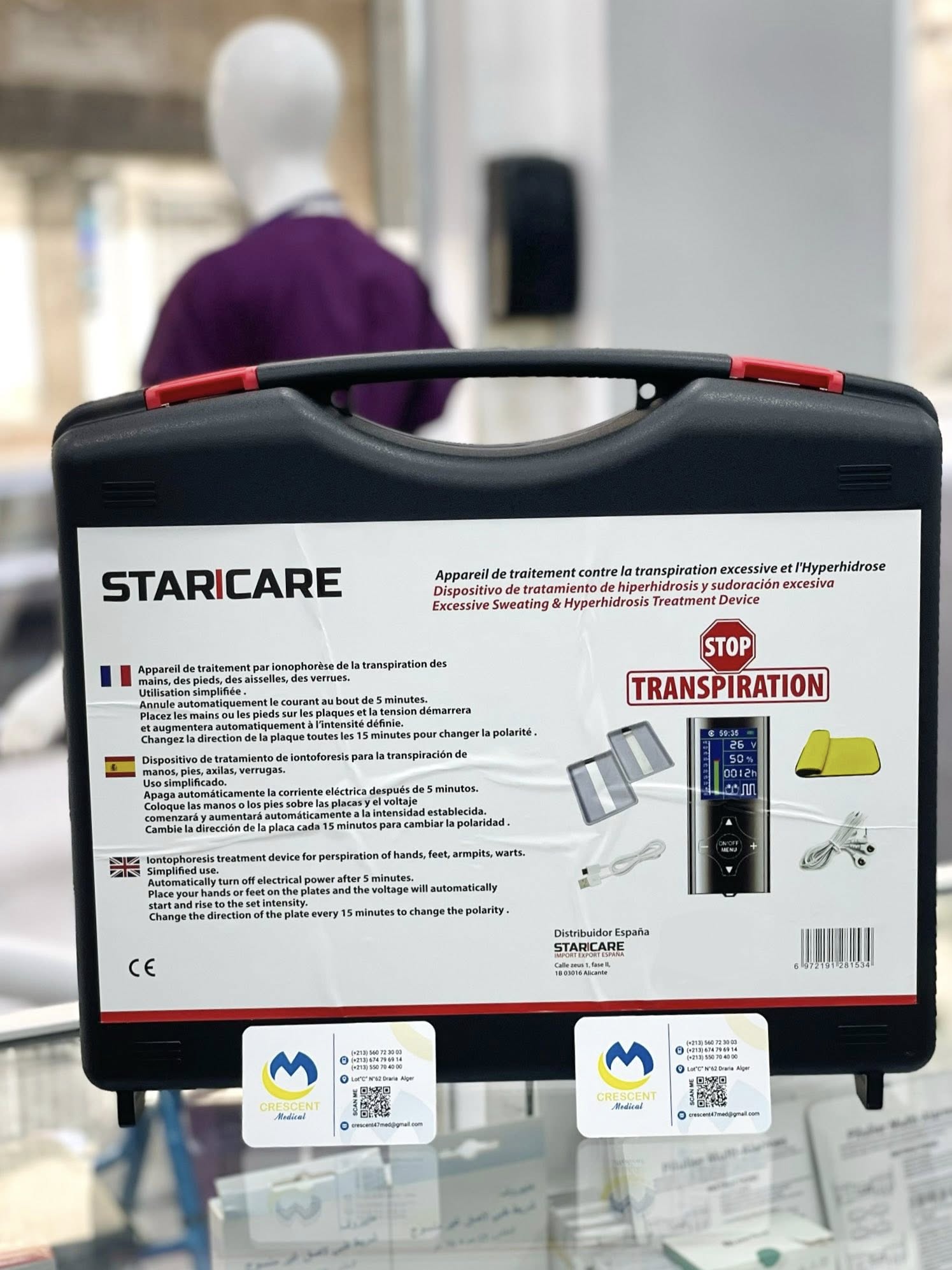 APPAREIL IONOPHORESE DE TRAITEMENT DE LA TRANSPIRATION EXCESSIVE